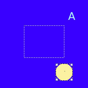 Sometimes it's easier to choose multiple layers using rubber-banding: click somewhere outside an imaginary rectangular region covering the layers you want to choose. Then drag out that region by moving the pointer, and release the mouse button. Now every layer, which is completely inside the dragged rectangle, is selected. Note that now there is no target “first item” the selected layers can be aligned on. |