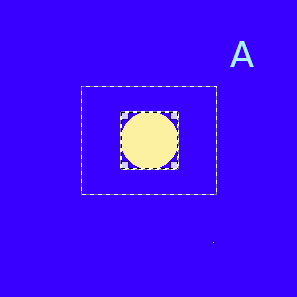 We click on the yellow circle: layer #2 becomes the source. We want to send this source to the middle of the selection: the Relative to option is set to “Selection”.
