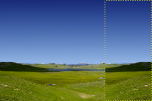 Click on new layer (superimposed on selection area): new layer limits appear. Align new layer to image right side.