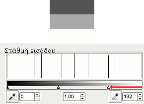 Το γκρίζο ρυθμιστικό προσδιορίζει το μεσαίο σημείο. Πηγαίνοντας στα αριστερά, προς το μαύρο, κάνει την εικόνα πιο φωτεινή (πιο χρωματιστή / πιο αδιαφανή). Πηγαίνοντας στα δεξιά, προς το λευκό, κάνει την εικόνα πιο σκοτεινή (λιγότερο χρωματιστή / περισσότερο διαφανή).