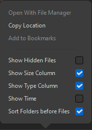 This is only enabled for folders. If enabled, you can open the selected folder in the default file browser on your computer. Note: this command currently does not work on Windows.