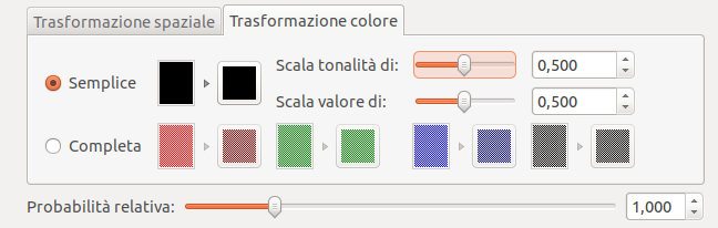 Come la trasformazione di colore Semplice ma in questo caso si può controllare la trasformazione per ciascun canale di colore e per il canale alfa (visualizzato come un canale di colore nero).