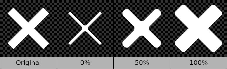 The radius of the neighborhood. Increasing radius increases blur. Contrary to the 「Gaussian」 filter, edges are not blurred. Corners are rounded and convex surfaces are eroded.
