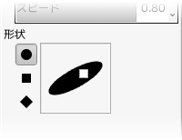 ペン先の形状を円形、 正方形、 平行四辺形の 3 種類から選びます。