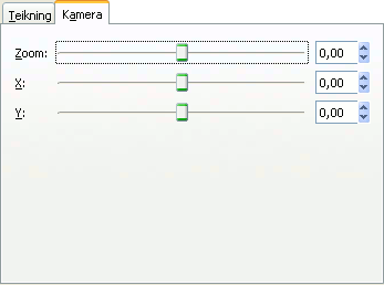 I hovuddialogvindauget kan du gje parameterar for Teikning og Kamera. Dei tre første parameterane i teikne-fana er Lysstyrke, Kontrast og Gamma. Resultatet av desse alternativa er synlege i vindauget for førehandsvising. Som oftast er det betre å halda seg til standardverdiane og korrigera biletet seinare med verktøy i menyen Fargar.
