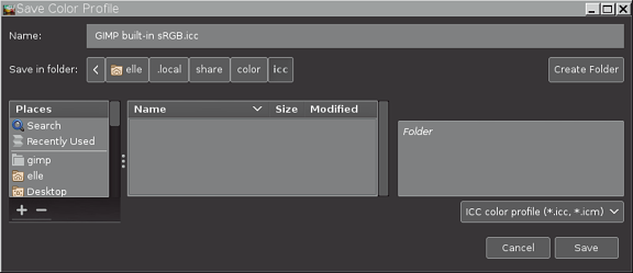 Скажем, вам нужно сохранить копию встроенного в GIMP профиля sRGB на диск.