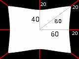 A 160×120 pixels image, plain white displacement map, and displacement coefficient 20.0: this results in a 20 pixels displacement towards center. This is a horizontal reduction in size by 25%, vertical by 33%, and diagonal by 20%, so the image will be distorted.