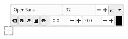 Text is managed with the Text tool. This tool creates a new layer containing the text, above the current layer in the Layers dialog, with the size of the text box. Its name is the beginning of the text.