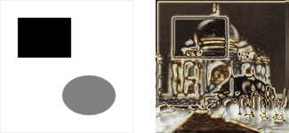 This filter provides a chrome effect. The source image must be an image containing a single layer. This layer is used as mask („stencil“) for the chrome effect.