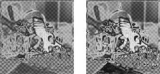 For both layers the color balance is modified (according to Highlight balance and Chrome balance), increasing the amount of red, green, and blue, with emphasis on highlights.